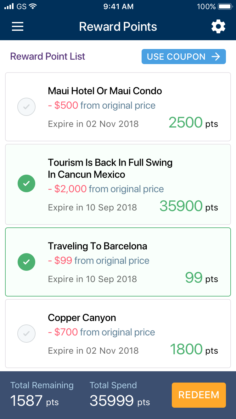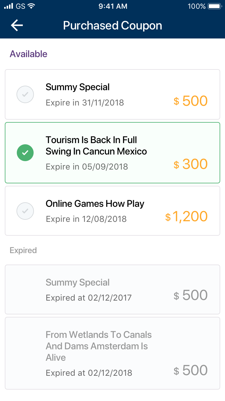 Purchased Coupon List